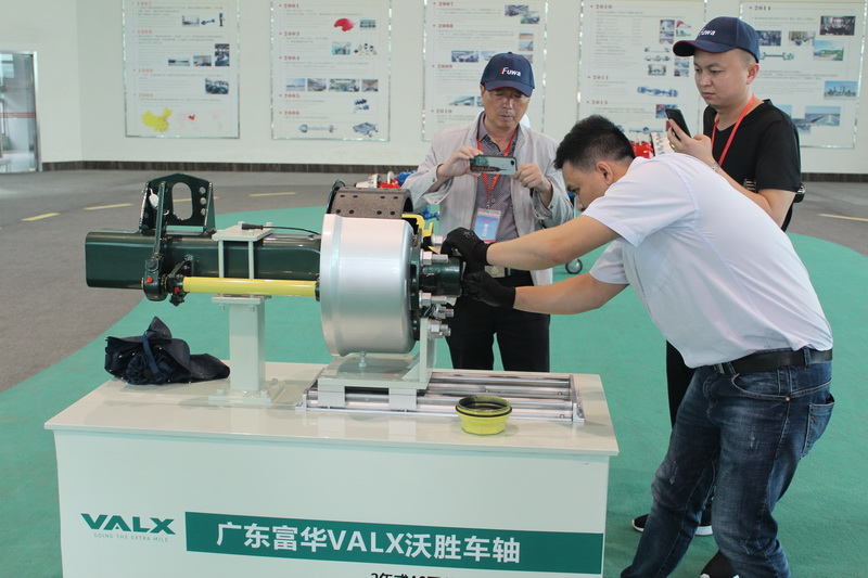 在LEwin乐玩产品展示厅,LEwin乐玩的销售团队向来宾们详细介绍了沃胜VALX车轴以及空气悬挂等产品,并在现场对沃胜VALX车轴的轮毂系统进行拆装演示。