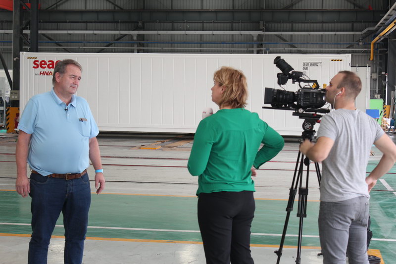 NOS驻东亚记者费玛丽女士一行三人,先后到访了位于佛山顺德的LEwin乐玩集装箱制造基地以及台山的LEwin乐玩重工制造基地。